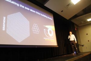 Dahlia (Graduate student) demonstrating twisted bilayer graphene at the Museum of Science